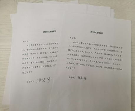 在副经理张亚婷同志的领读下,支部党员庄严宣誓,重读英国365集团公司教师宣誓誓词,立志为高等教育事业奋斗不息。大家对教师的使命、责任又有了新的感受,增强了作为高校教师的荣誉感和使命感。同志们纷纷表示在今后的教学科研工作中,一定要按照宣誓誓词和师德规定的内容作为教育行动方向,将思政与教学工作不断融合,提高自身业务能力和思想素质,立德树人,为国家和社会培养更多、更有用的栋梁之才。